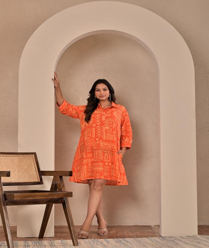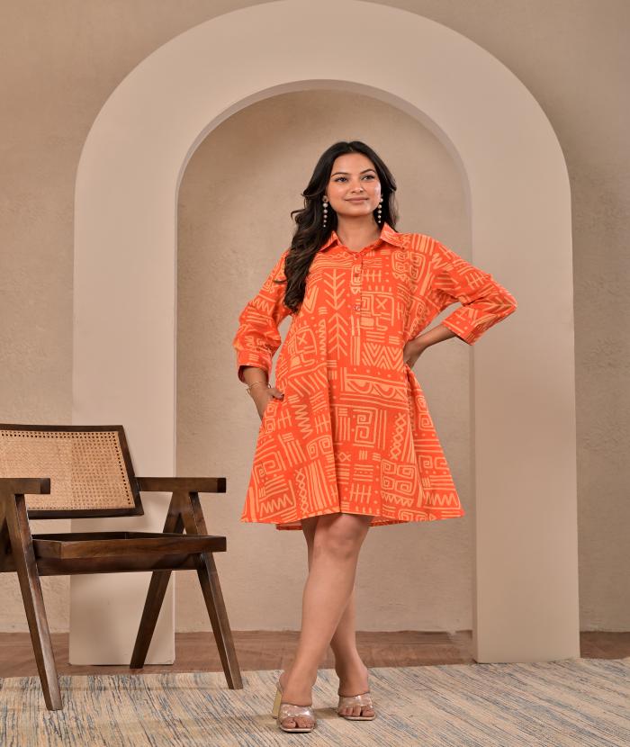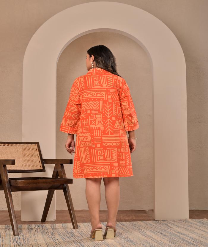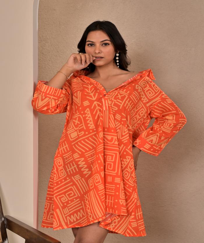 - Bright Orange Base With geometric/tribal Print