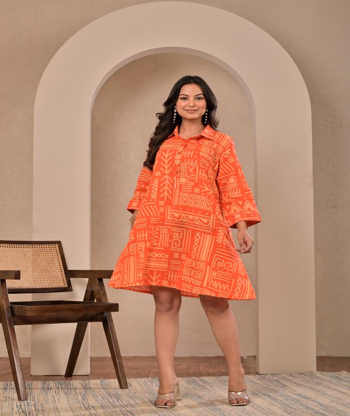 - Bright Orange Base With geometric/tribal Print
